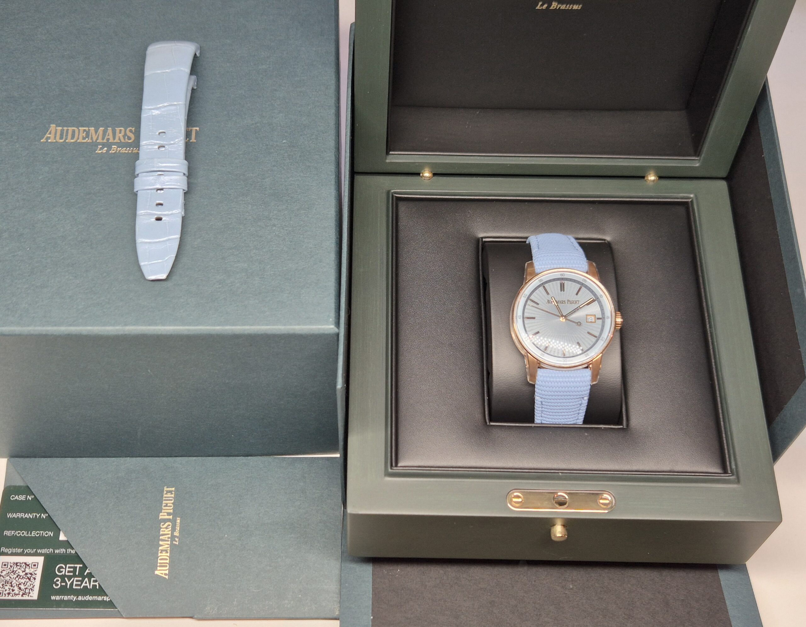 | Model | Audemars Piguet Code 11.59 38MM Automatic Rose Gold Ice Blue Dial – 77410OR 'B&P 2025' As New |