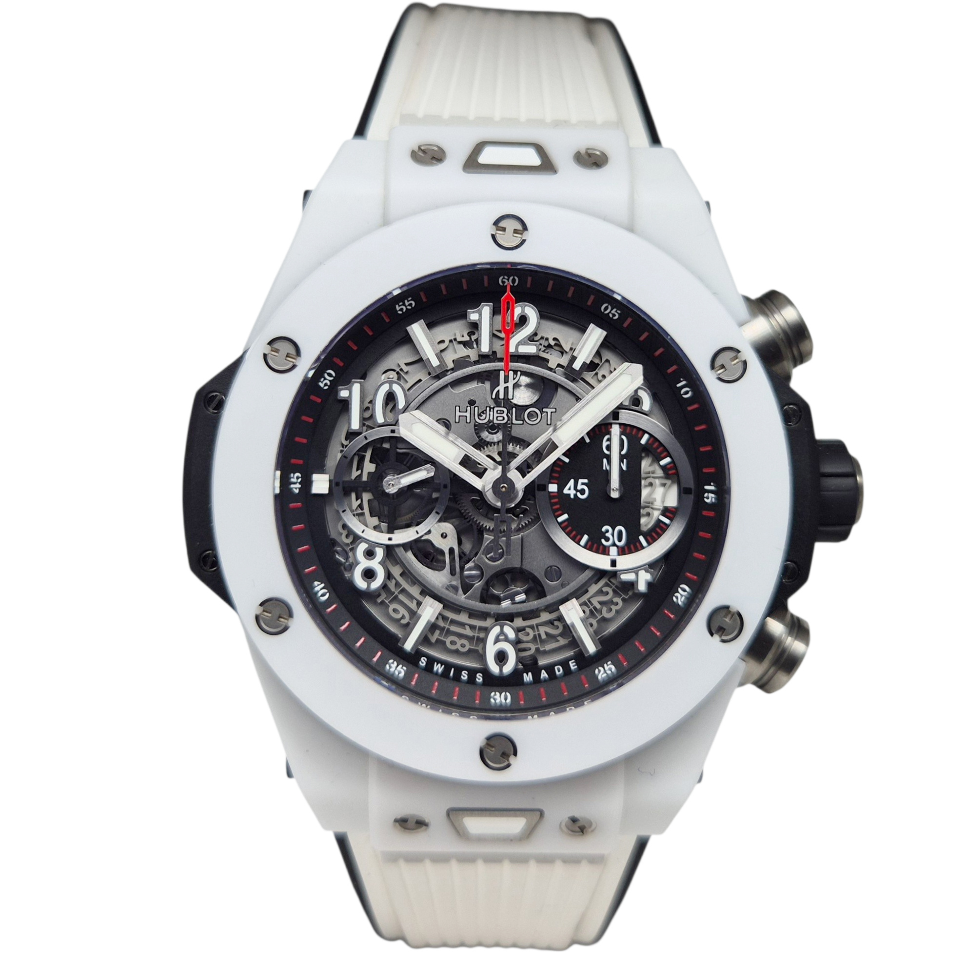 | Model | Hublot Unico 45MM White Ceramic Automatic Chronograph – 441.HX.1170.RX 'B&P 2021' |