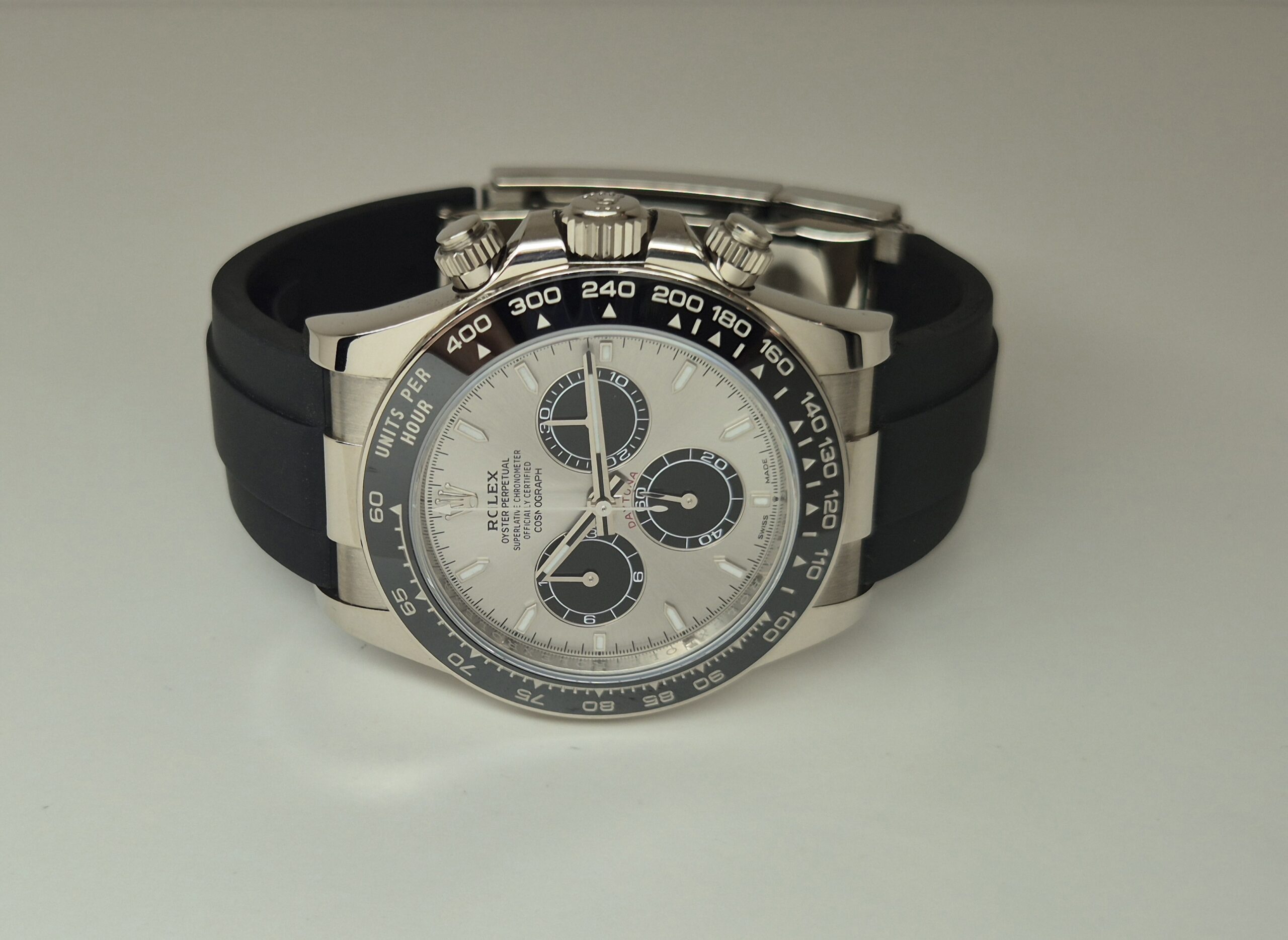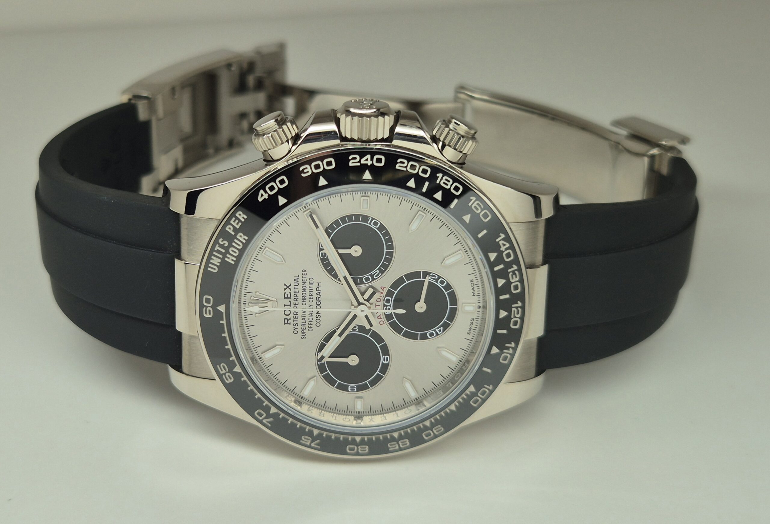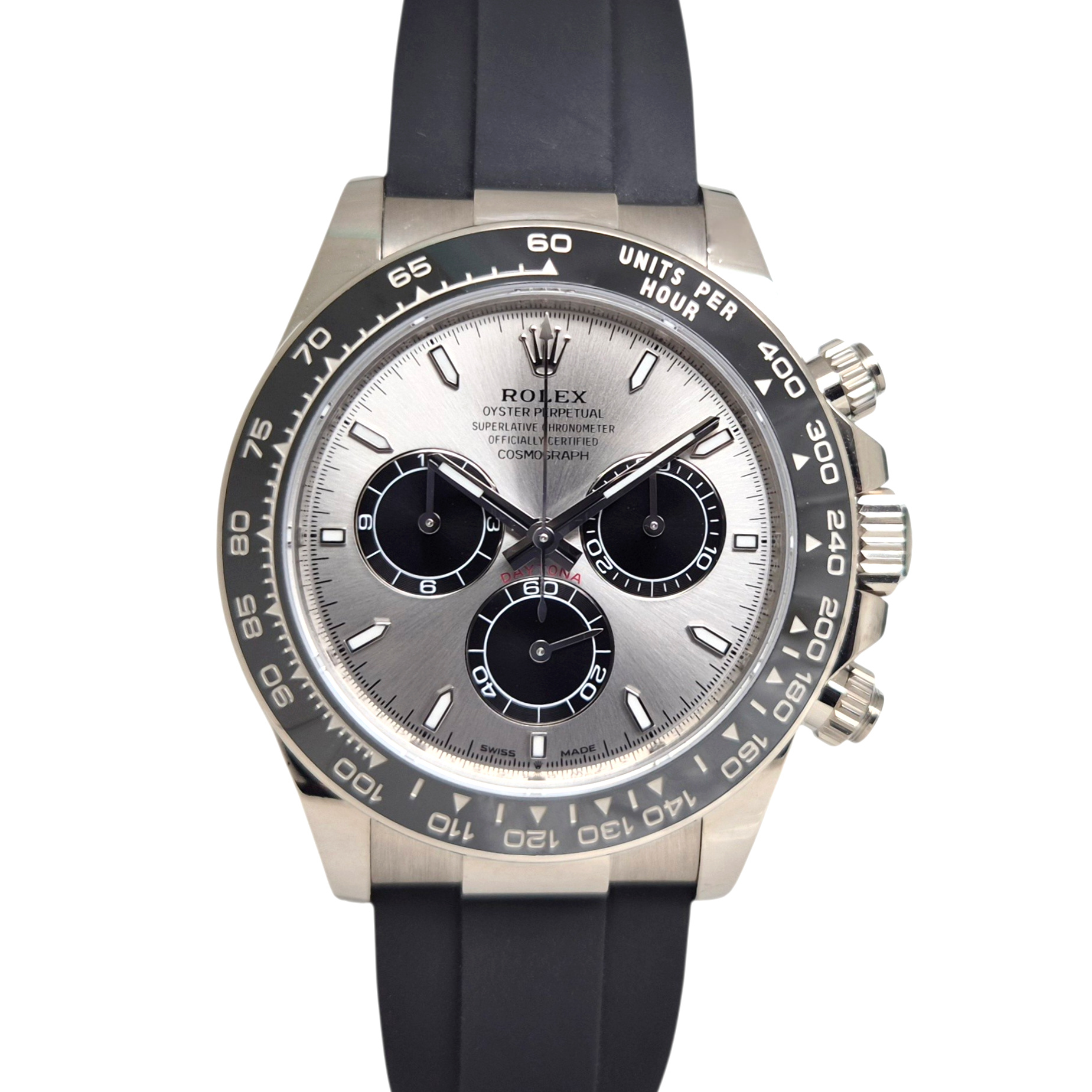 | Model | Rolex Cosmograph Daytona 40mm 18K White Gold Oysterflex Silver Dial – 126519LN 'B&P' |