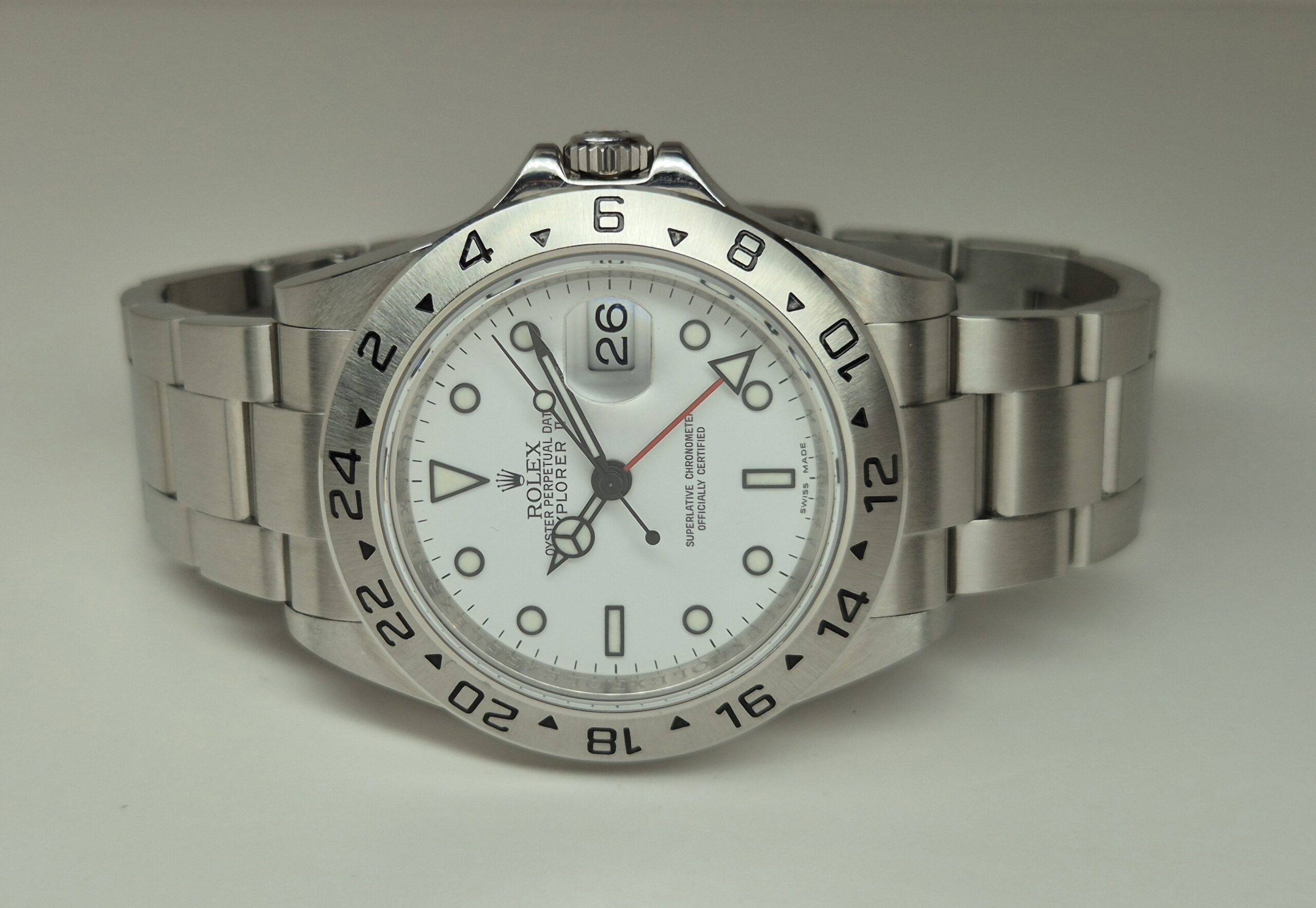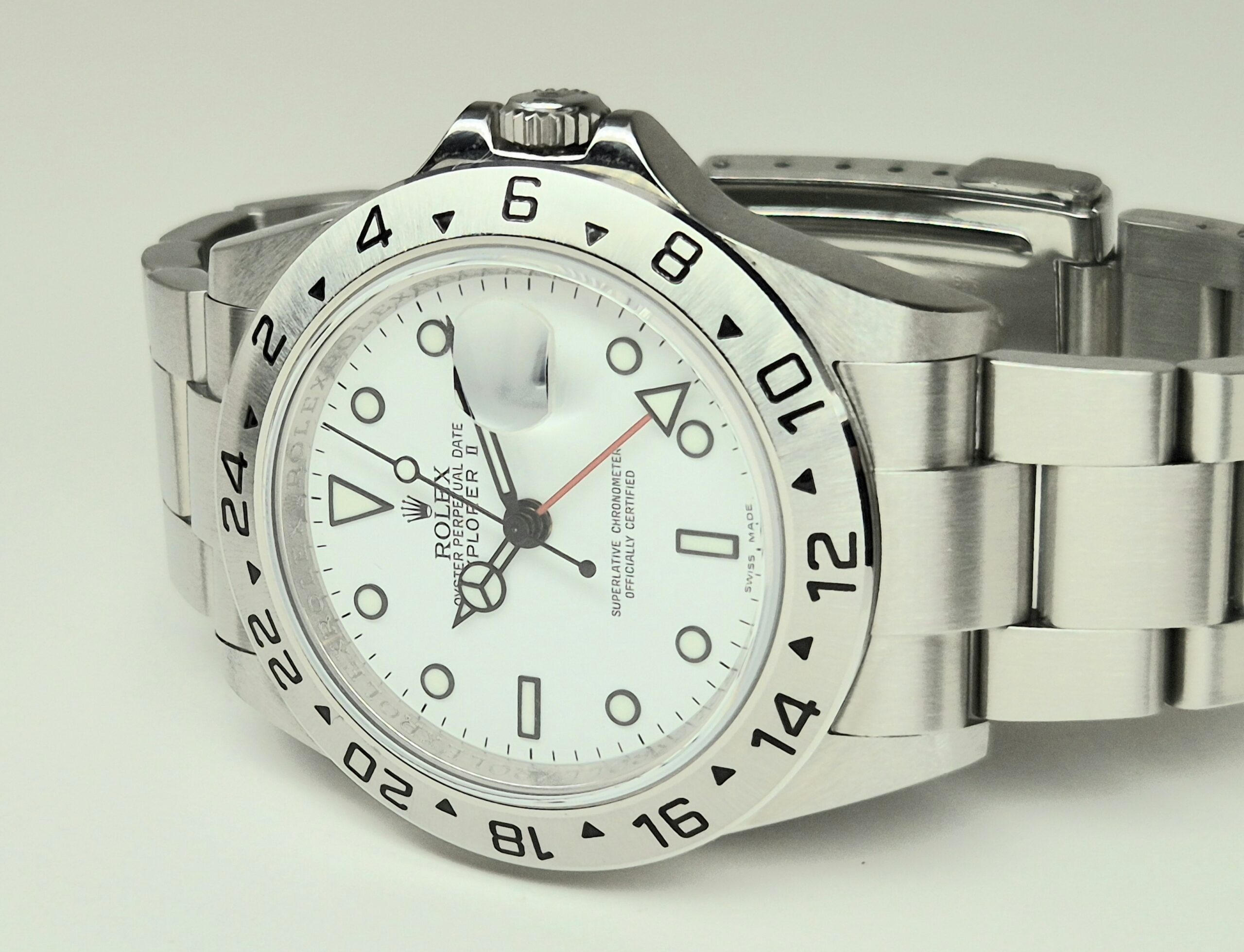 Rolex Explorer ll 40mm Automatic Stainless Steel White Dial Engraved Rehaut – 16570 ‘B&P’