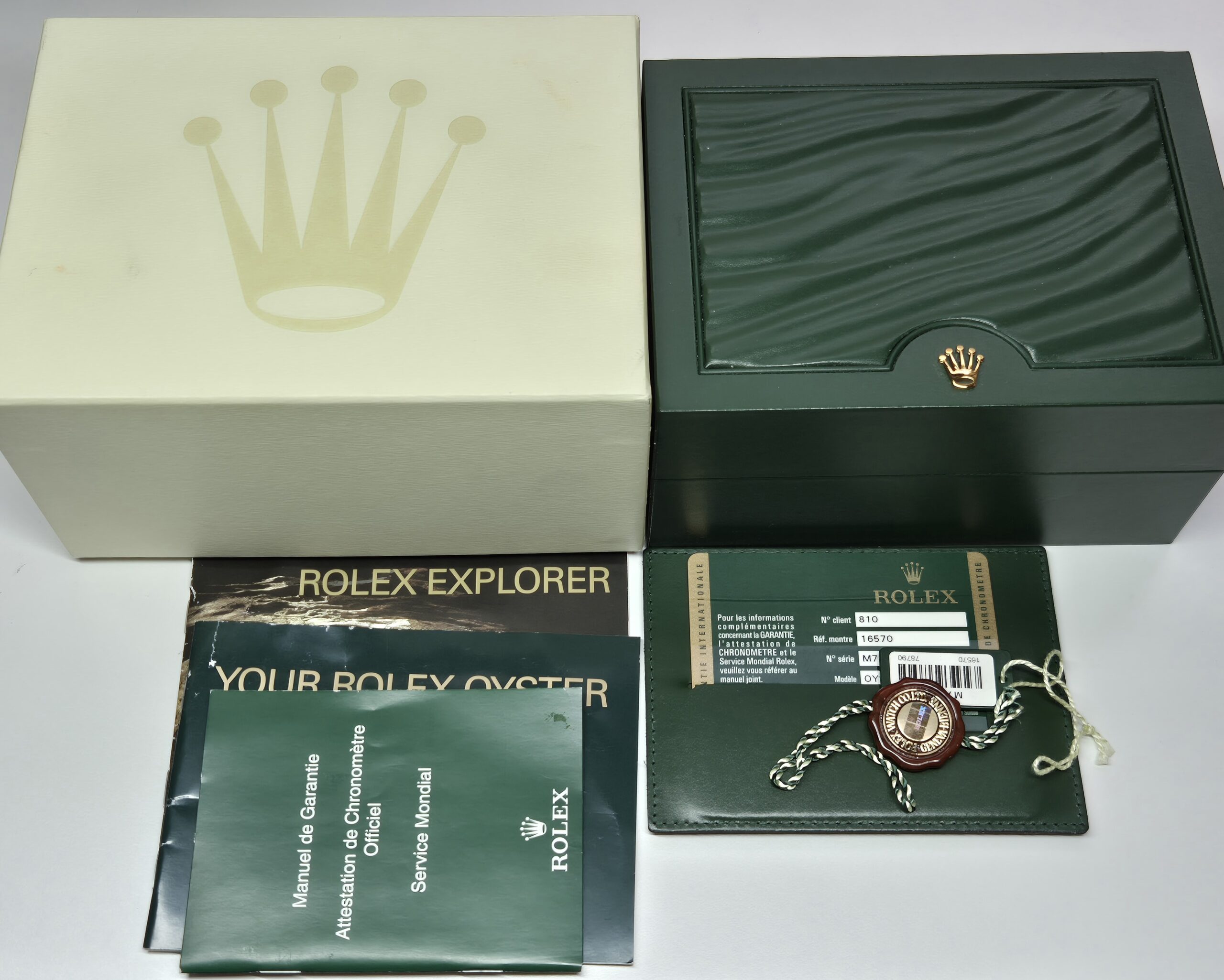 | Model | Rolex Explorer ll 40mm Automatic Stainless Steel White Dial Engraved Rehaut – 16570 'B&P' |
